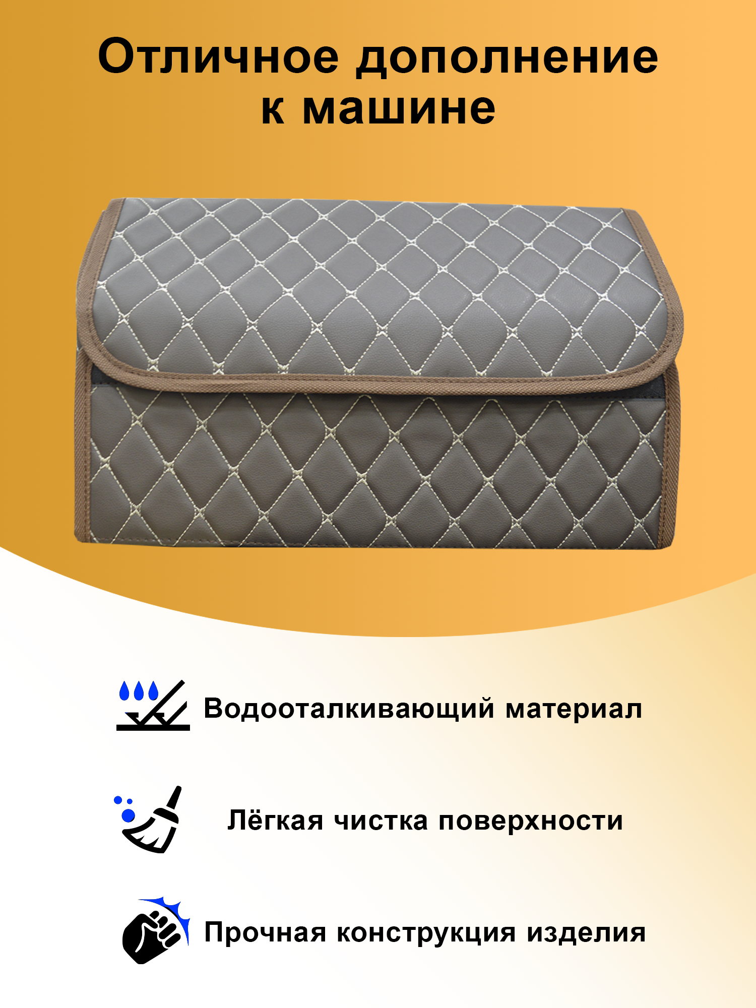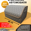 Сумка органайзер для багажника или салона автомобиля коричневый. Стёганый материал, коричневая строчка