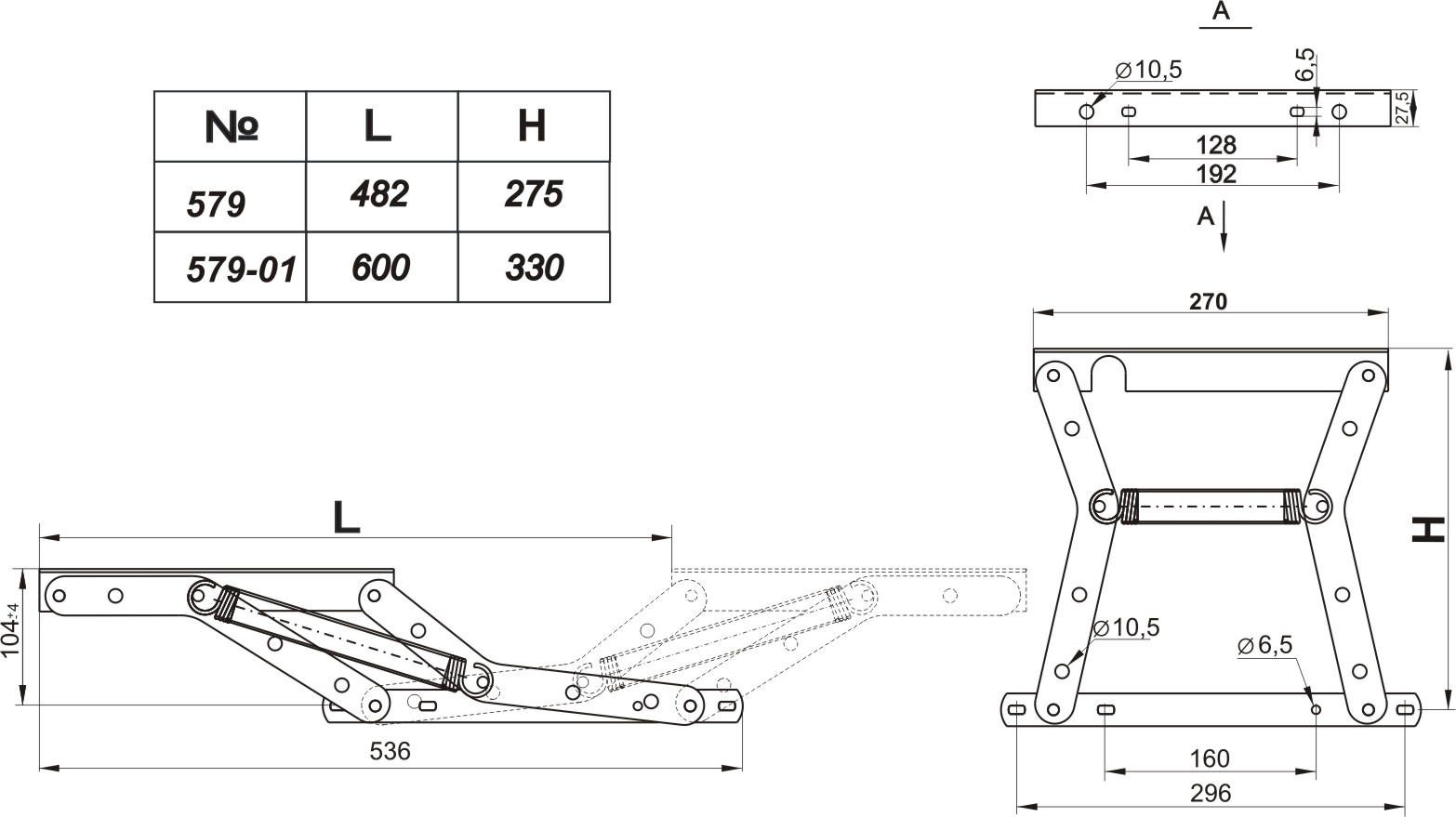 механизм трансформации тик-так с ногой, ход механизма на 480 и 600мм Механизм №579