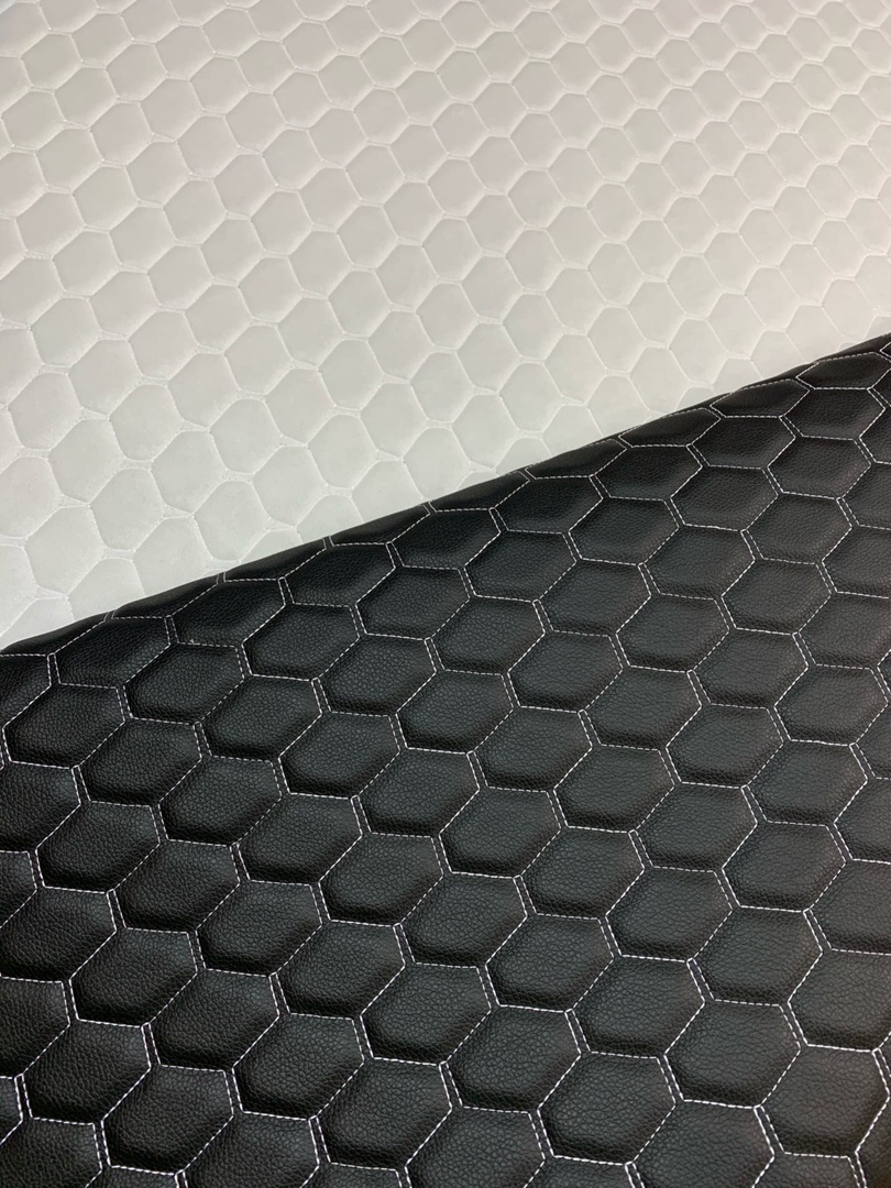 Стеганная экокожа на поролоне с подложкой - это экокожа Орегон с декоративной строчкой в виде ромба, квадрата и соты дублированная поролоном 5мм и подложкой в виде спанбонда.